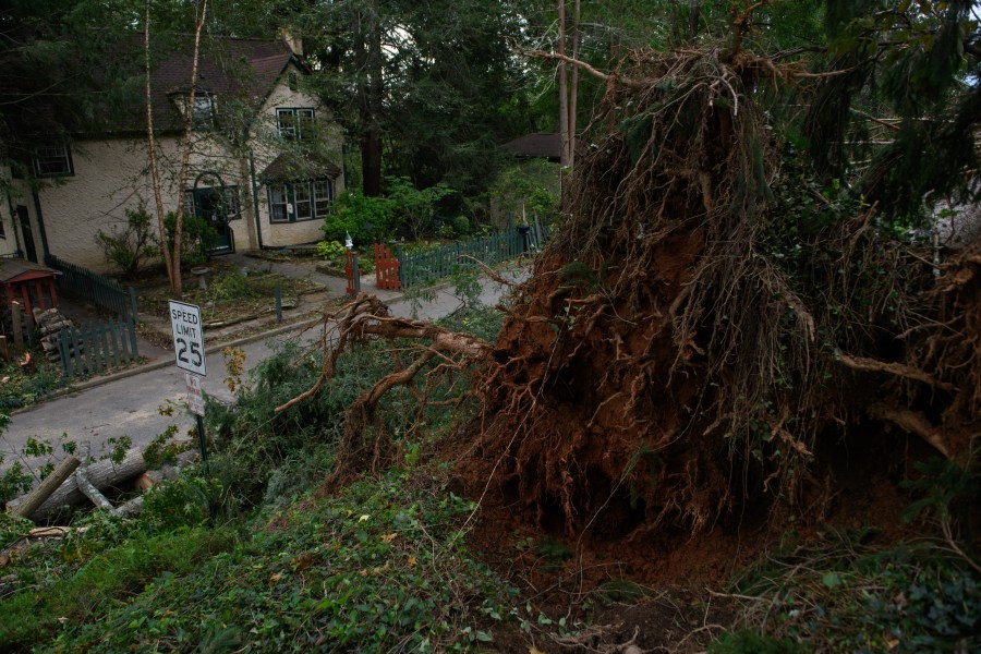ASHEVILLE, NORTH CAROLINA – SEPTEMBER 28: Storm damage near the Biltmore Village in the aftermath of Hurricane Helene on September 28, 2024 in Asheville, North Carolina. Hurricane Helene made landfall Thursday night in Florida’s Big Bend with winds up to 140 mph. (Photo by Sean Rayford/Getty Images)