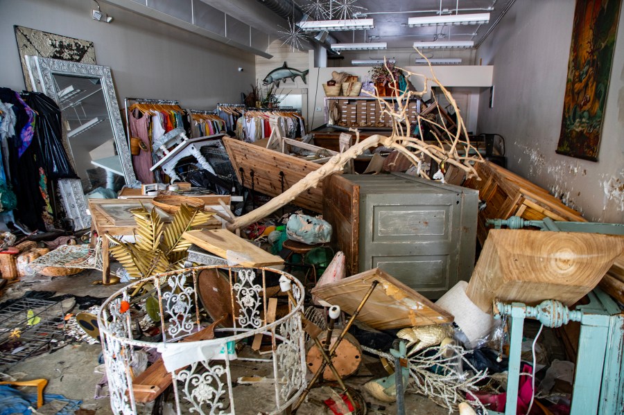 ASHEVILLE, NORTH CAROLINA – SEPTEMBER 28: Flood damage inside a building in the Biltmore Village in the aftermath of Hurricane Helene on September 28, 2024 in Asheville, North Carolina. Hurricane Helene made landfall Thursday night in Florida’s Big Bend with winds up to 140 mph. (Photo by Sean Rayford/Getty Images)