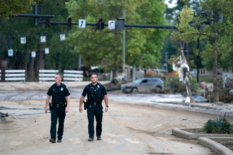 ASHEVILLE, NORTH CAROLINA – SEPTEMBER 29: Police patrol in the Biltmore Village in the aftermath of Hurricane Helene on September 29, 2024 in Asheville, North Carolina. According to reports, more than 60 people have been killed across the South due to the storm, and millions have been left without power. North Carolina has been approved for a Federal Major Disaster Declaration. (Photo by Sean Rayford/Getty Images)