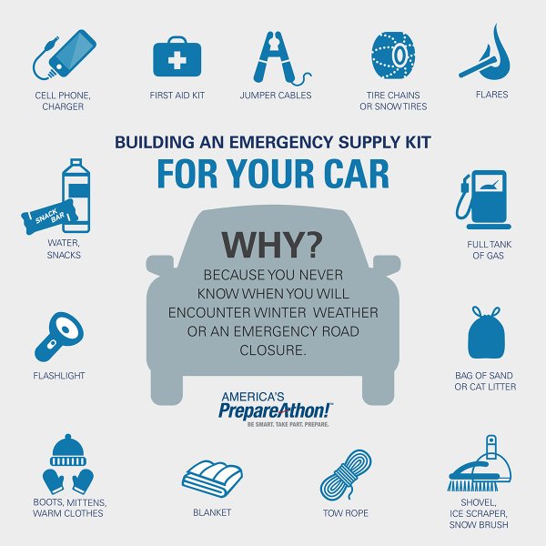 The National Weather Service (NWS) urges drivers to make sure their vehicles are stocked with the supplies they need in case of a winter emergency.