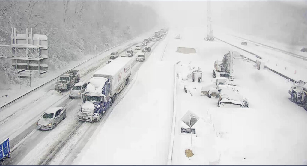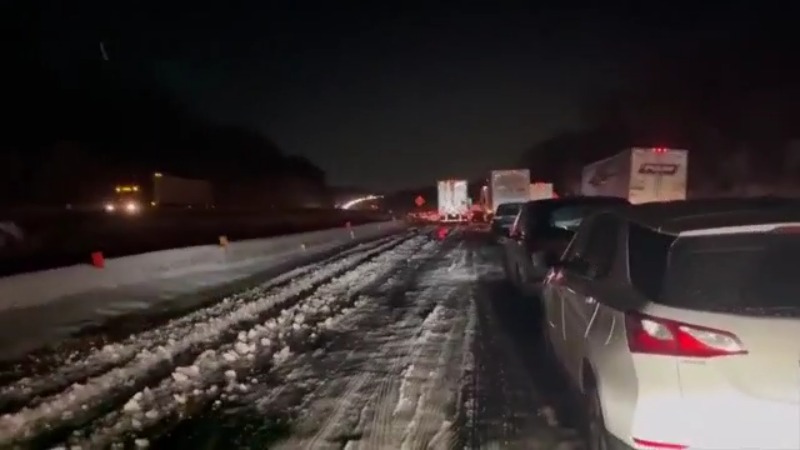 Hundreds stuck in Virginia traffic jam on snowed-in highway