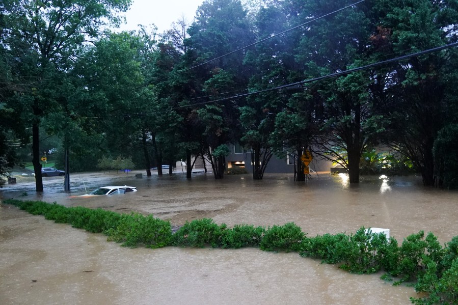ATLANTA, GEORGIA – SEPTEMBER 27: A car is submerged in the floodwaters in the Buckhead neighborhood in the aftermath of Hurricane Helene on September 27, 2024 in Atlanta, Georgia. Hurricane Helene made landfall in Florida’s Big Bend region as a category four hurricane, and has brought flooding inland as the storm system moves over Georgia, heading into the Carolinas. (Photo by Megan Varner/Getty Images)
