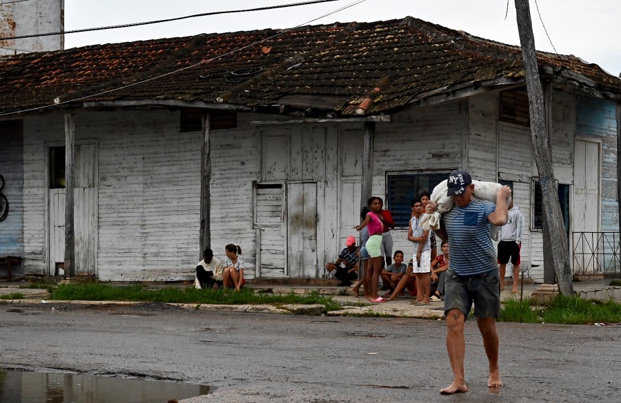 A man carries a sack with food in Batabano, Mayabeque province, on September 26, 2022, ahead of the arrival of Hurricane Ian. – Cuba declared an emergency alert in its six most western provinces as fast-approaching Hurricane Ian was moving northwest towards Cuba and the Cayman Islands with maximum sustained winds of 85 miles (135 kilometres) per hour. (Photo by ADALBERTO ROQUE / AFP) (Photo by ADALBERTO ROQUE/AFP via Getty Images)