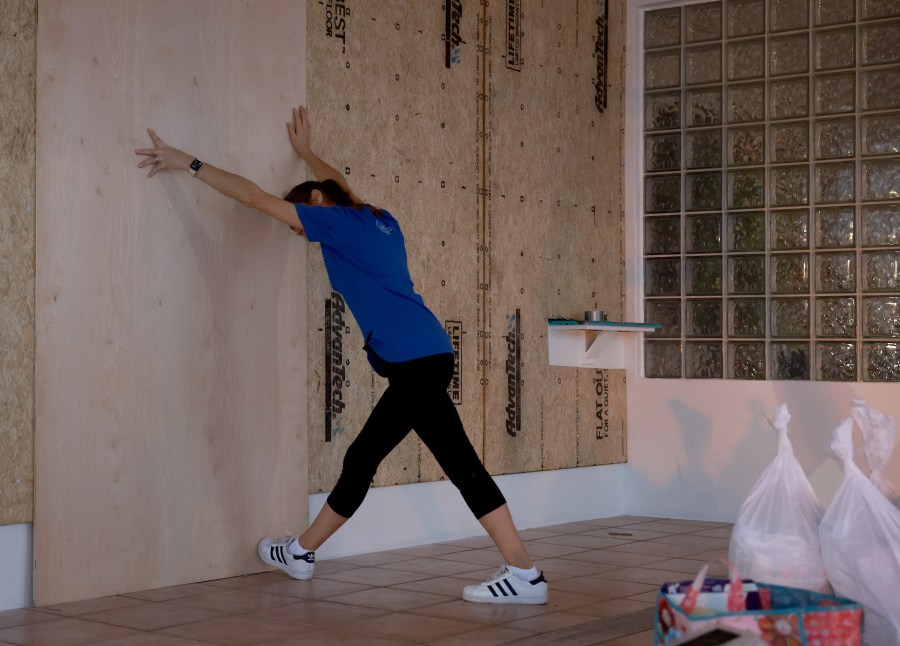 ST. PETERSBURG, FLORIDA – SEPTEMBER 26: Eglantine Leguerchois boards up the Paradise Sweets store in preparation for Hurricane Ian on September 26, 2022 in St. Petersburg, Florida. Ian is projected to make its closest pass to the Tampa Bay area tomorrow, with current tracking putting the center 25 miles west of the coastline and northern bound along the Atlantic seaboard. (Photo by Joe Raedle/Getty Images)
