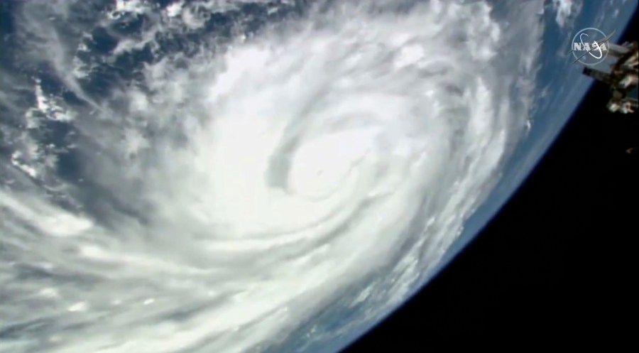 This image provided by NASA shows Hurricane Ian seen below the International Space Station as the storm was gaining strength south of Cuba and moving toward Florida at around 3pm ET on Monday, Sept 26, 2022. (NASA via AP)