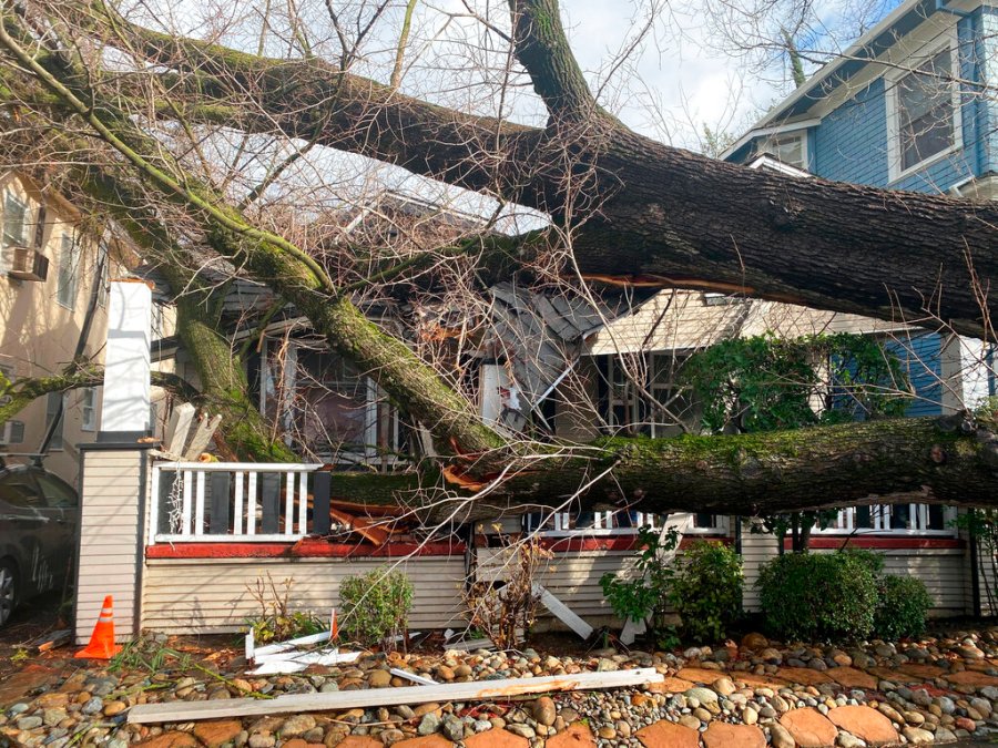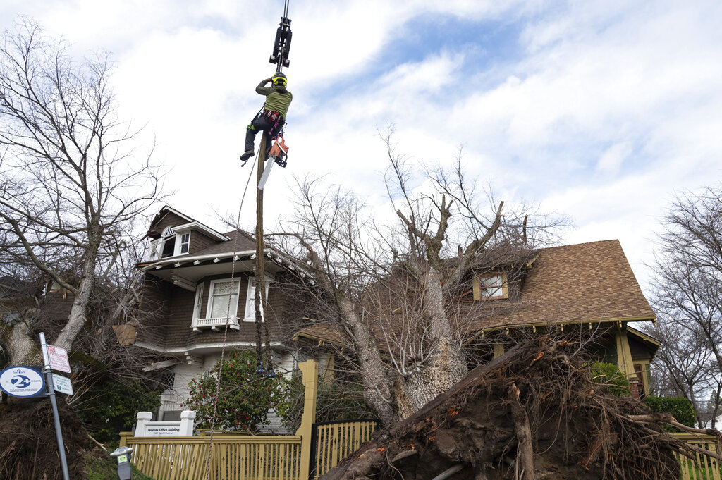 At least 17 people have died from storms that began late last month, Gov. Gavin Newsom said during a visit to the scenic town of Capitola on the Santa Cruz coast that was hard hit by high surf and flooding creek waters last week. The deaths included a pickup truck driver and motorcyclist killed Tuesday morning when a eucalyptus tree fell on them on Highway 99 in the San Joaquin Valley near Visalia, the California Highway Patrol said.