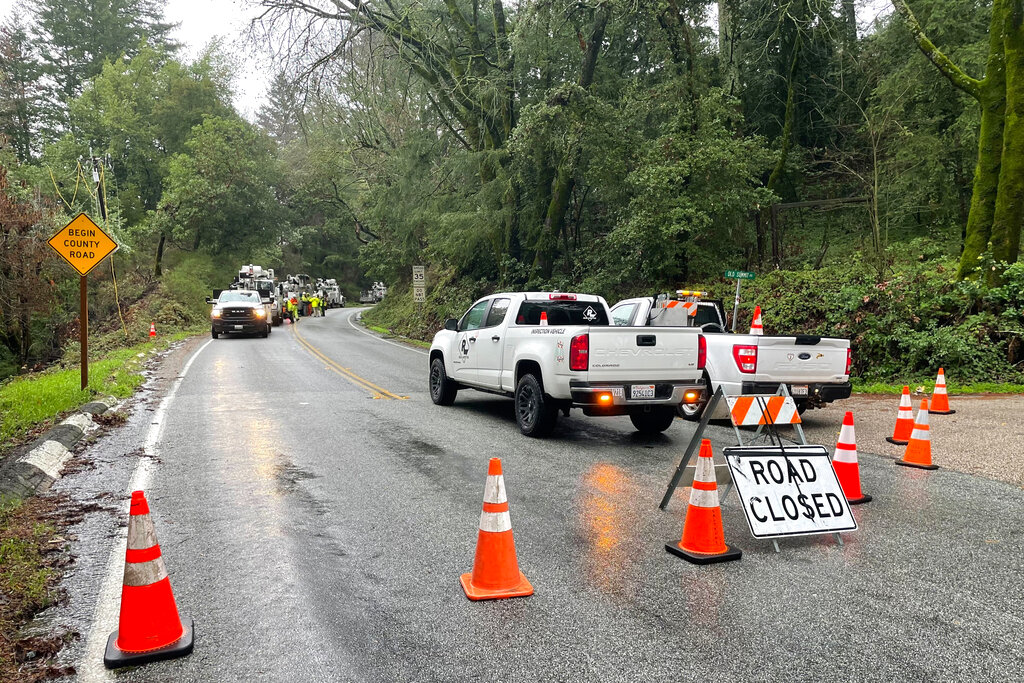 The weather service issued a flood watch through Tuesday for the entire San Francisco Bay Area, along with the Sacramento Valley and Monterey Bay. Areas hit by wildfires in recent years faced the possibility of mud and debris sliding down bare hillsides.