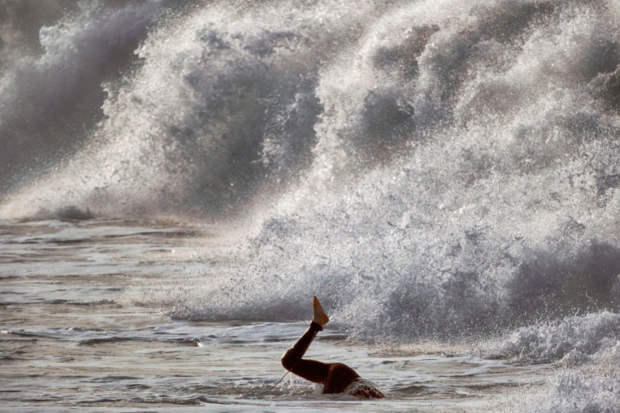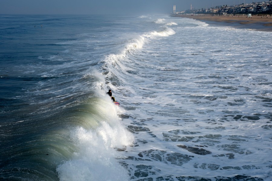 While not quite as huge, the waves along Southern California were also described as hazardous, with life-threatening rip currents. Nonetheless, surfers couldn’t resist.