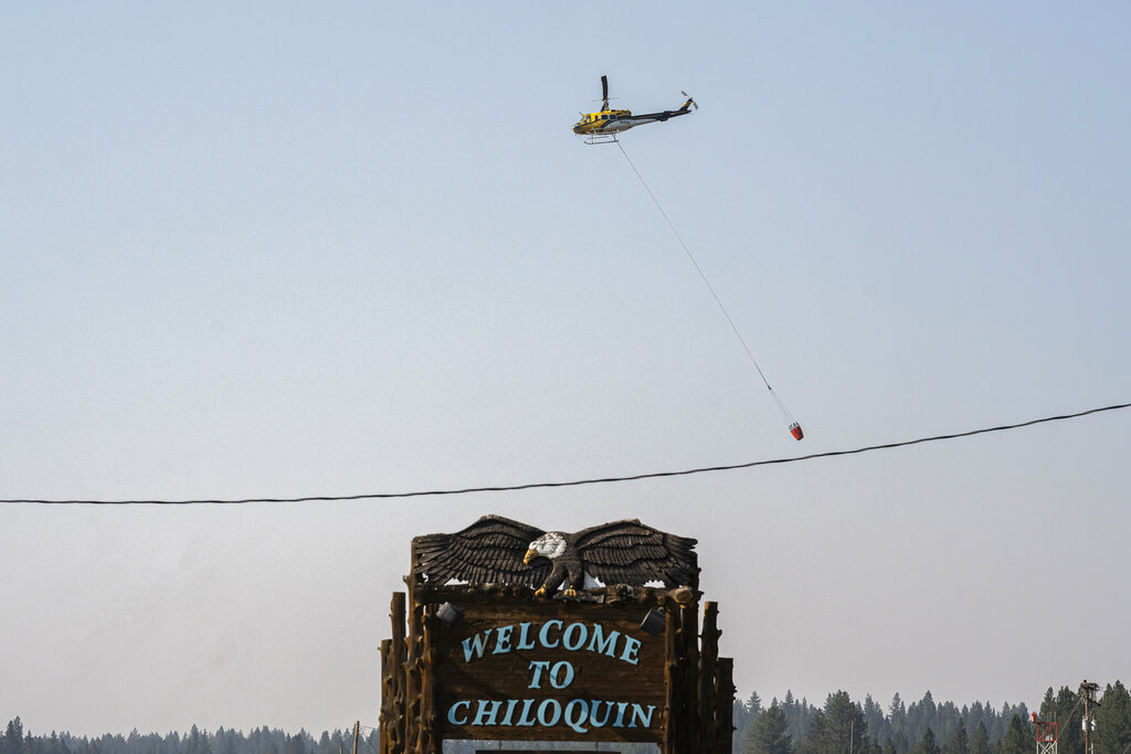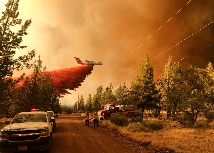 LOS ANGELES (AP) — Wildfires that torched homes and forced thousands to evacuate burned across 10 parched Western states on Tuesday, and the largest, in Oregon, threatened a portion of California’s power supply.