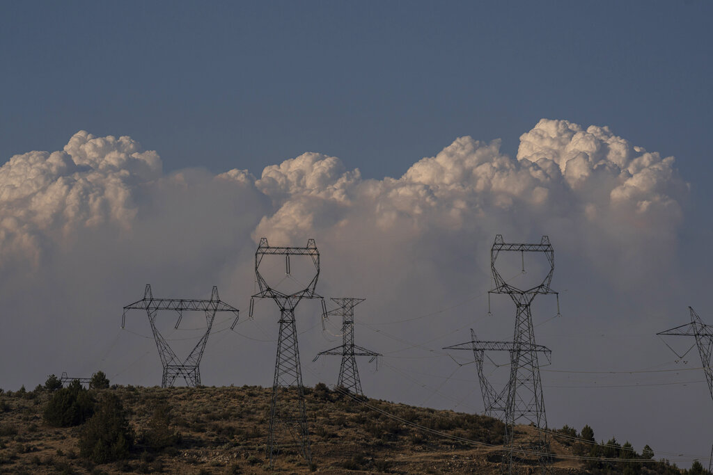 The fire disrupted service on three transmission lines providing up to 5,500 megawatts of electricity to California, and that state’s power grid operator asked for voluntary power conservation Monday evening. The operator reported that more than 44,500 megawatts were available Tuesday.