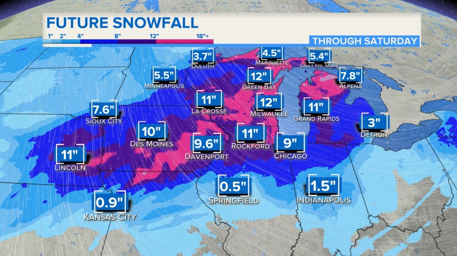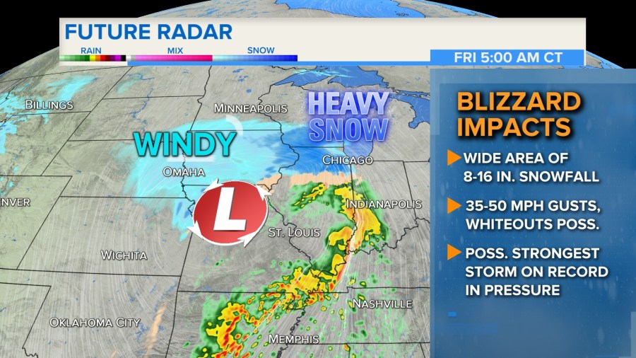 The winter storm is expected to dump as much as a foot of snow in some parts of the Midwest. Several winter weather warnings and advisories have also been issued for surrounding states. Hundreds of schools have also closed Friday due to the storm.