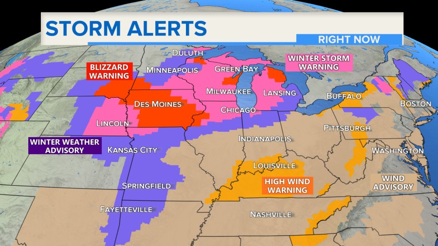 In Chicago, authorities warned people to stay safe and check on elderly and vulnerable residents during the storm. Mayor Brandon Johnson also announced the city would be temporarily suspending a 60-day limit for those staying at shelters due to the weather.