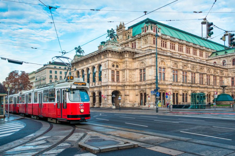 trams pass the State Opera House on Ringstrasse, Vienna, Austria. (Photo by: Andrew Michael/Education Images/Universal Images Group via Getty Images)