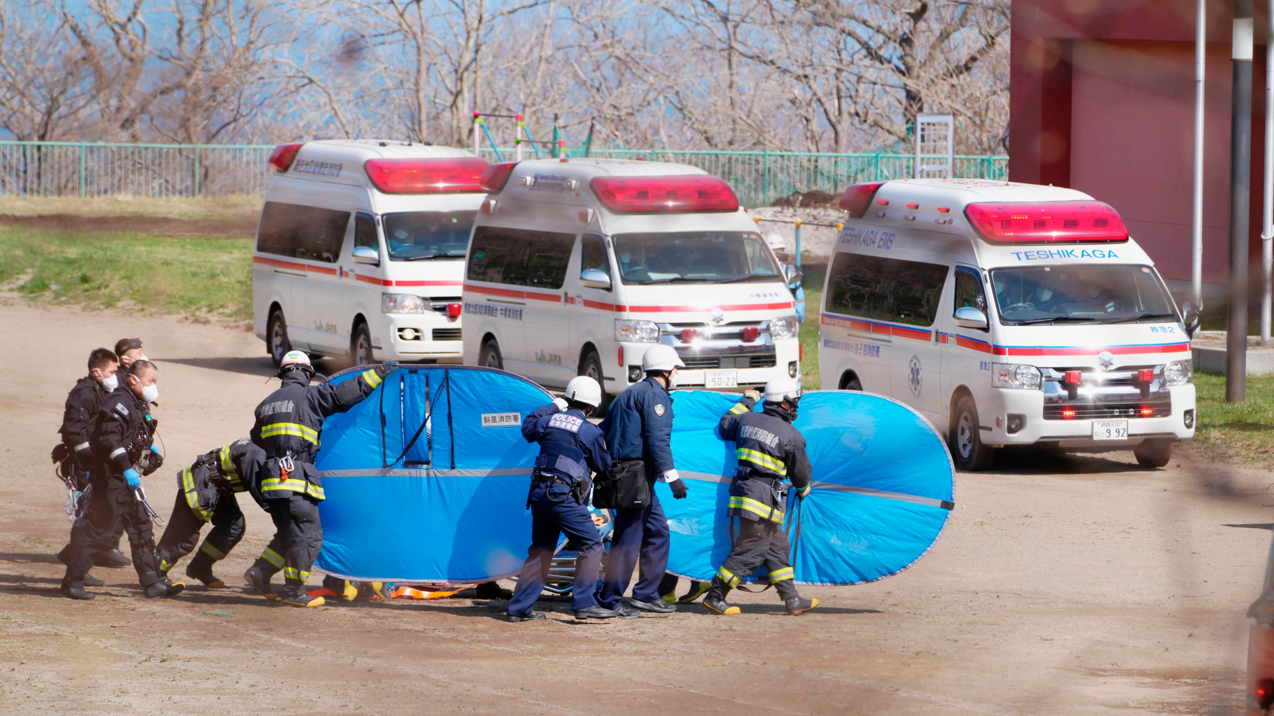 Footage on public broadcaster NHK showed one of the victims arriving on a helicopter and being transferred to an ambulance on a stretcher. Rescuers held up blue plastic shields to protect the victim’s privacy.