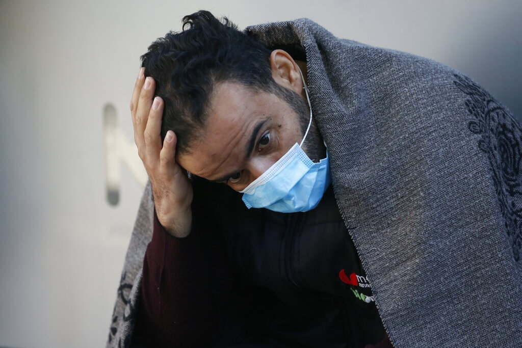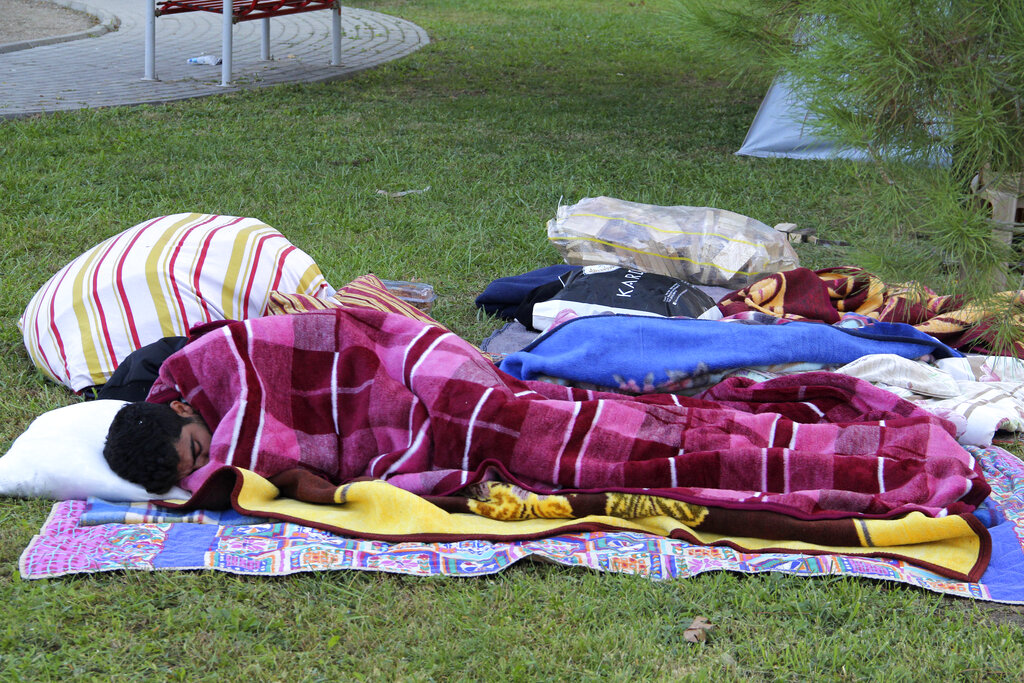A man sleeps outdoors for fear of strong aftershocks after an earthquake collapsed their houses, in Izmir, Turkey, Sunday, Nov. 1, 2020. The strong earthquake in the Aegean Sea struck Turkey and Greece on Friday. (AP Photo/Ismail Gokmen)