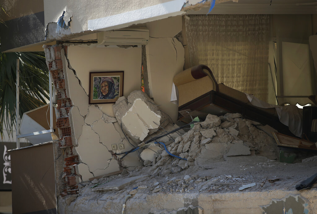 The interior of a destroyed living room of a family flat is seen after the building collapsed in Izmir, Turkey, Sunday, Nov. 1, 2020. Rescue teams continue ploughing through concrete blocs and debris of collapsed buildings in Turkey’s third largest city in search of survivors of a powerful earthquake that struck Turkey’s Aegean coast and north of the Greek island of Samos, Friday Oct. 30, killing dozens Hundreds of others were injured.(AP Photo/Emrah Gurel)