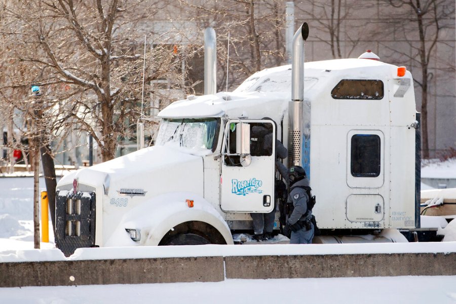 OTTAWA, Ontario (AP) — Police arrested scores of demonstrators and towed away vehicles Friday in Canada’s besieged capital, and a stream of trucks started leaving under the pressure, raising authorities’ hopes for an end to the three-week protest against the country’s COVID-19 restrictions.