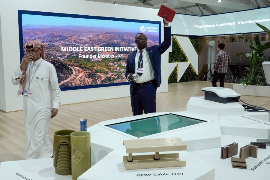 SHARM EL-SHEIKH, Egypt (AP) — Hydrogen cars and vehicles that capture their tailpipe pollutants. Computer mice made from recycled ocean waste plastic. Hundreds of millions of trees planted in the desert. Saudi Arabia’s vision of an environmentally friendly future is on display just a short drive from the venue of the U.N. climate summit being held in Egypt.