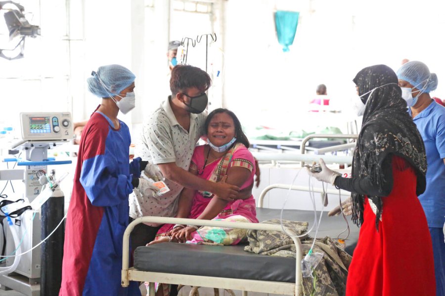 A woman cries after her husband died of a leakage in the oxygen plant of a hospital in Nashik, in the Indian state of Maharashtra, Wednesday, April 21, 2021. A local administrator in western India says 22 patients have died in a hospital when their oxygen supply was interrupted by a leakage in a supply tank. The official says the oxygen supply has since been resumed to other patients. (AP Photo)