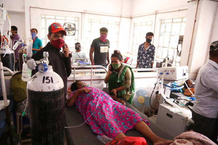 Patients use oxygen cylinders in hospital after a leakage in the oxygen plant in Nashik, in the Indian state of Maharashtra, Wednesday, April 21, 2021. A local administrator in western India says 22 patients have died in a hospital when their oxygen supply was interrupted by a leakage in a supply tank. The official says the oxygen supply has since been resumed to other patients. (AP Photo)