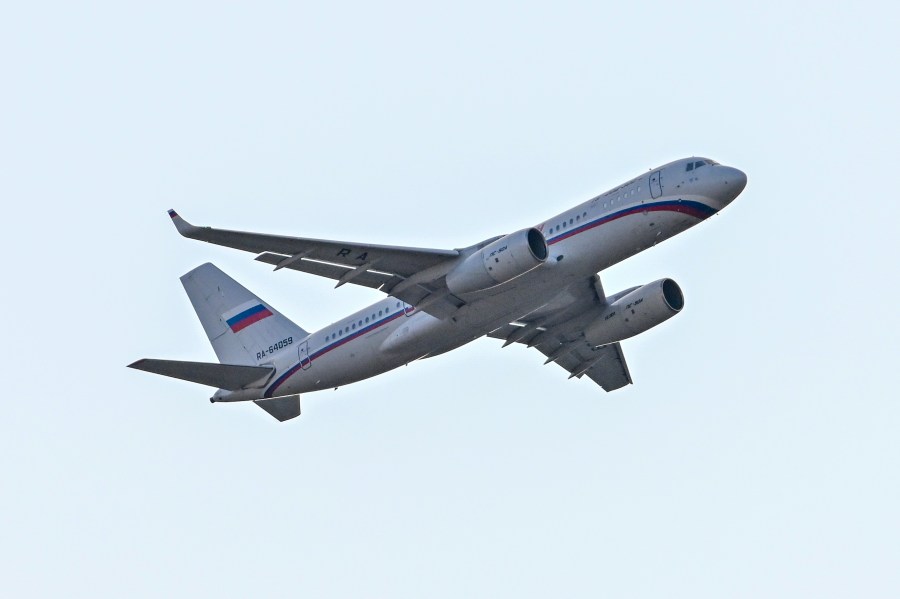 A Russian Plane, believed to be carrying released Russian prisoners, leaves the Ankara Airport, Turkey, Thursday, Aug. 1, 2024. (AP Photo)