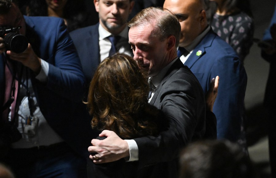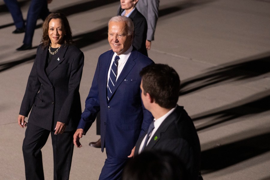 Whelan came out first, shaking the president’s hand as they exchanged words. Whelan then spoke to Harris, hugged Biden and Harris, gave a short wave and hugged family members.