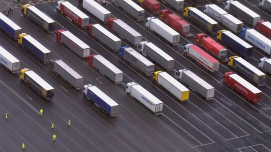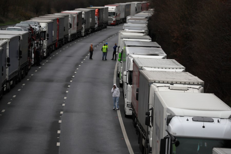 Britain said 632 trucks were stacked up on the M20 motorway in Kent, southern England, and 2,188 at nearby Manston Airport, now being used as a giant lorry park. The government said additional toilets and food vendors were being arranged, after the Road Haulage Association raised concerns about drivers’ welfare.