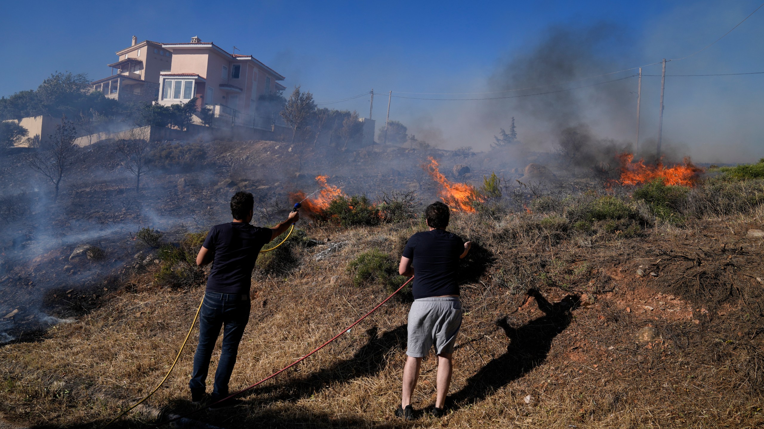 Greece has avoided the heat wave that hit countries in western Europe, including the U.K., this week, but fire officials say this summer’s hot and dry conditions, which have lasted for weeks, as well as longer-term temperature increases have increased the overall risk of forest fires. At least two people were hospitalized in the Greek capital with breathing problems and minor burns. Helicopters scooped up water pumped into outdoor tanks near homes on hillside suburbs before flying back into thick smoke to make the water drops.