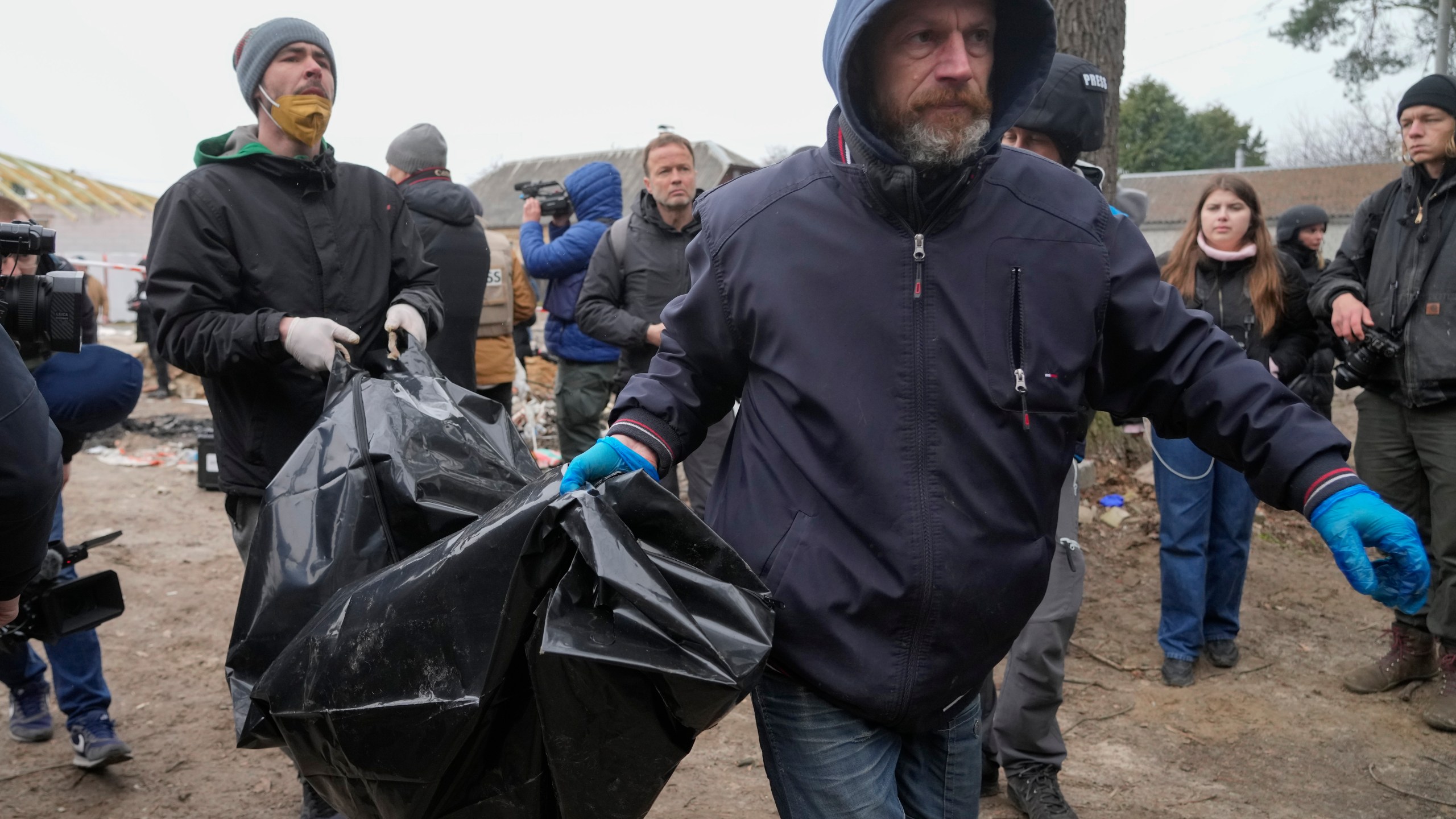 The AP has seen dozens of dead bodies around Bucha, where Russian forces withdrew in the past week. The images, which included some with their arms bound, have horrified the world. Many victims appeared to have been shot at close range, some in the head. At least two had their hands tied.