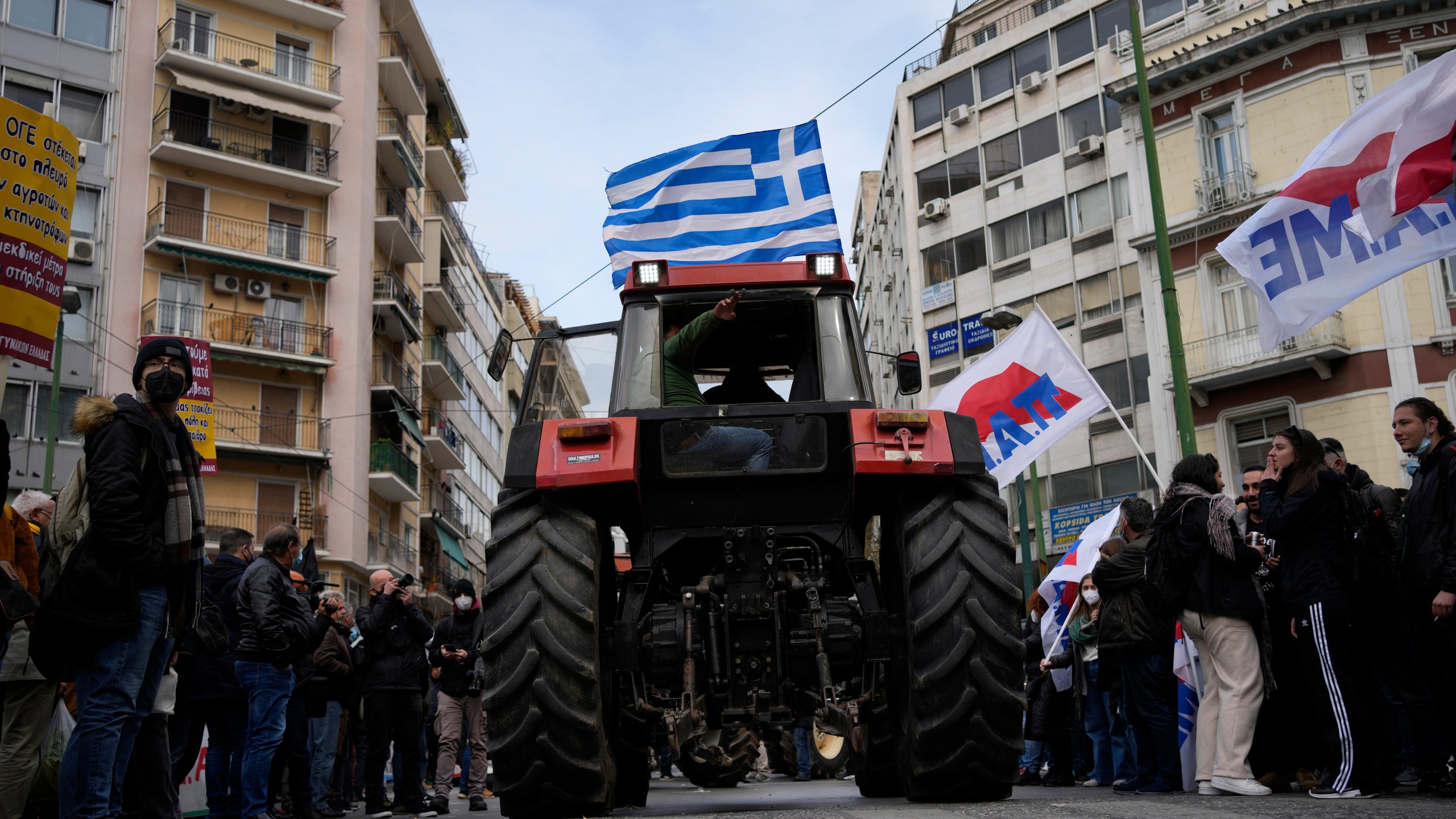 Meanwhile, hundreds of protesting farmers blocked traffi c in central Athens to demand the government grant them additional concessions to cope with high energy costs. Holding up vegetables and black flags, the protesters, some on tractors, gathered outside the Farm Ministry and planned to head to parliament in the center of the capital.