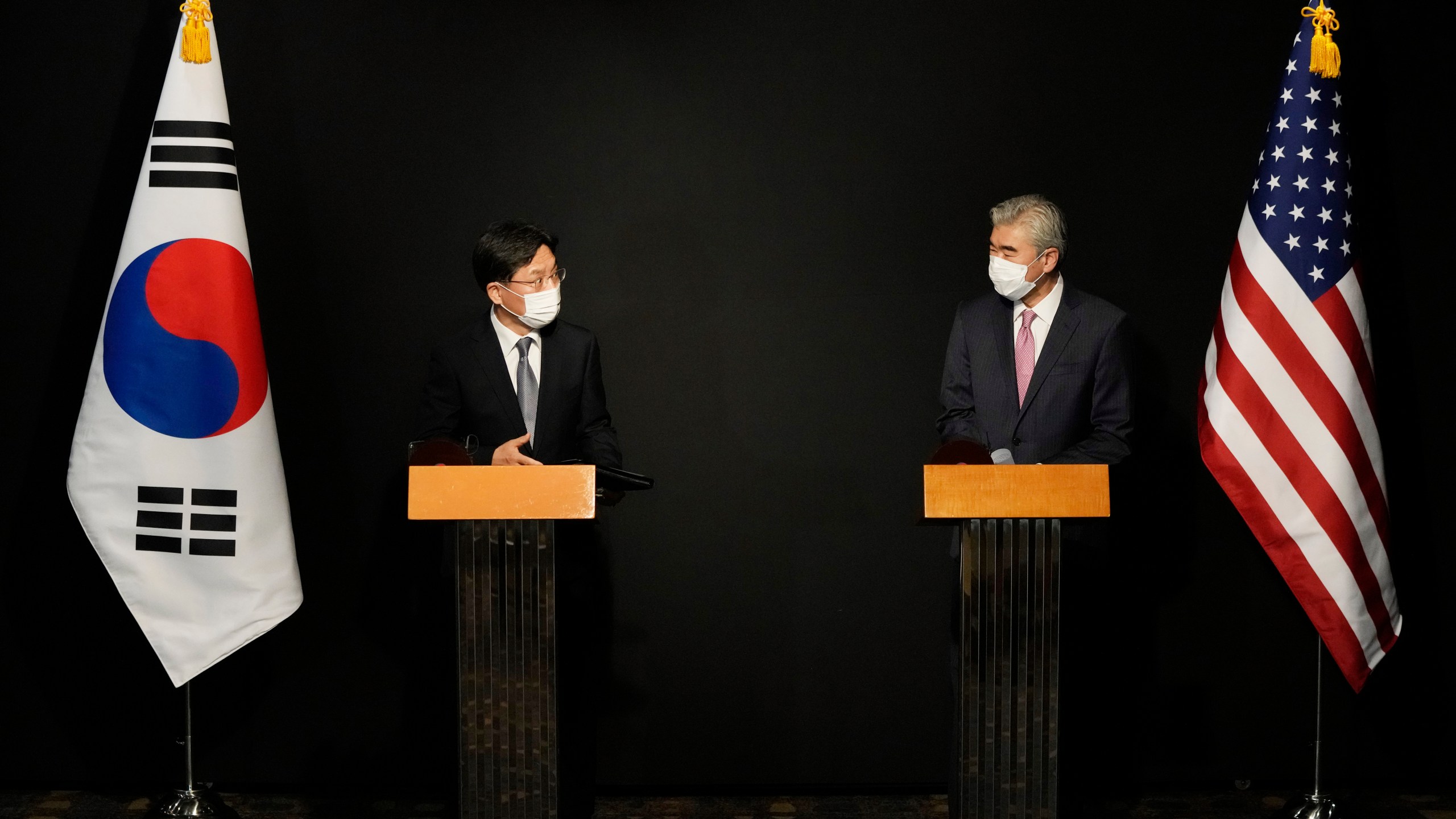 Kim’s South Korean counterpart, Noh Kyu-duk, said the two had an “in-depth” discussion on Seoul’s push for a symbolic declaration to end the 1950-53 Korean War as a way to bring peace. Noh said he and Kim also reaffirmed that North Korea’s issues of concern can be discussed once talks are restarted.