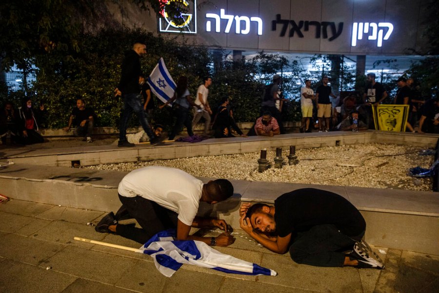 In Lod, thousands of mourners joined a funeral for an Arab man killed by a suspected Jewish gunman the previous night. The crowd clashed with police, and set a synagogue and some 30 vehicles, including a police car, on fire, Israeli media reported. Paramedics said a 56-year-old man was seriously hurt after his car was pelted with stones.