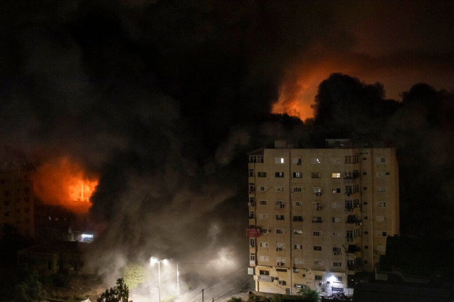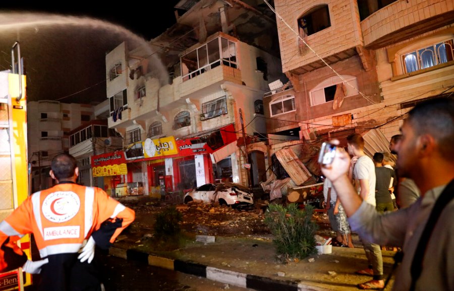 Israeli aircraft heavily damaged another Gaza City building early Wednesday. The nine-story structure housed residential apartments, medical companies and a dental clinic. A drone fired five warning rockets before the bombing. Israel said the building housed Hamas intelligence offices and the group’s command responsible for planning attacks on Israeli targets in the occupied West Bank.