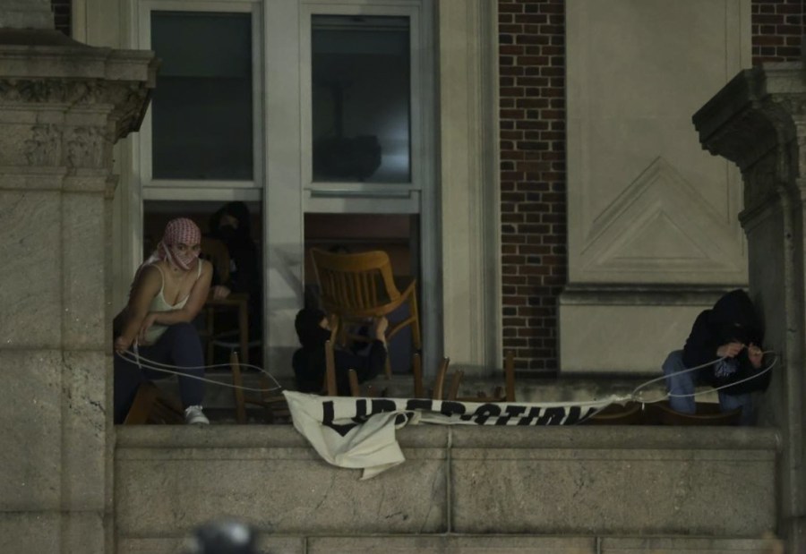 NEW YORK, UNITED STATES – APRIL 30: A group of Columbia University students, advocating for Palestinians, access the iconic Hamilton Hall building as they gather to stage a demonstration at the campus in New York, United States on April 30, 2024. Protests are sweeping college campuses across the US following a police attempt to clear a pro-Palestinian encampment at Columbia University, resulting in the arrest of over 100 students. Columbia University asked students on Monday to ‘voluntarily disperse’ amid stalled talks, threatening the students with suspension. (Photo by Selcuk Acar/Anadolu via Getty Images)