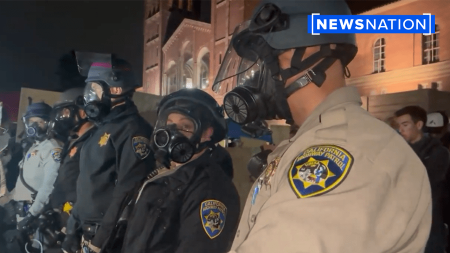 NewsNation captured California Highway Patrol officers wearing gas masks on UCLA’s campus after responding to request for help amid violent escalation between pro-Palestinian groups and counter-protesters.
