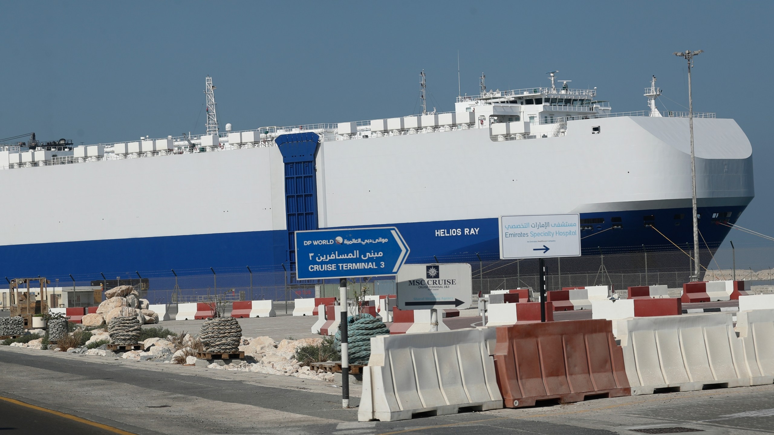 From the shore, AP journalists could not immediately see damage to the vessel. The dock blocked the view of the vessel’s starboard side down to the waterline and the port side could only be seen from a distance. The blue and white ship was anchored near Dubai’s storied floating hotel, the Queen Elizabeth 2. An Emirati coast guard vessel was seen sailing behind the ship, with Dubai police and Emirati armed forces vehicles parked nearby.