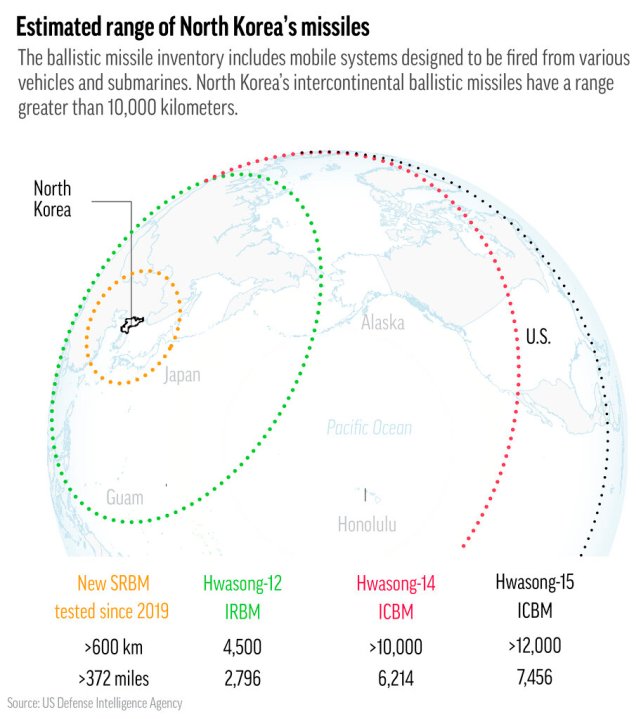 The longer-range missile appeared to be fired at a high angle, possibly to avoid entering the territory of neighbors, reaching a maximum altitude of 1,920 kilometers (1,193 miles) and traveling around 760 kilometers (472 miles), according to South Korea’s military.