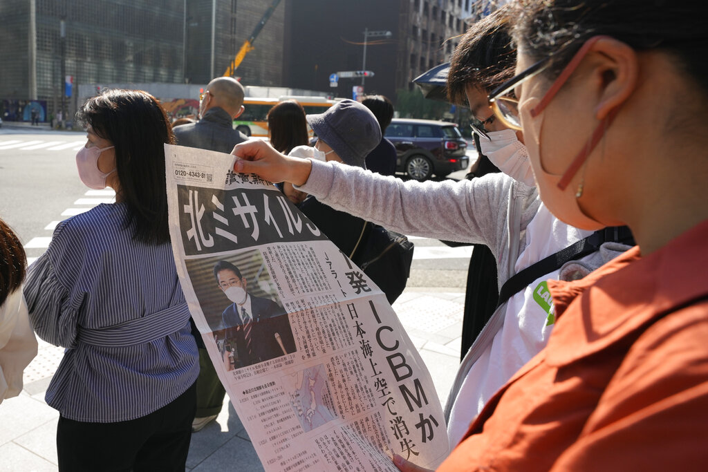Kishida condemned North Korea’s latest launches and said officials were analyzing the details of the weapons. The office of South Korean President Yoon Suk Yeol said his national security director, Kim Sung-han, discussed the launches during an emergency security meeting at which members talked about plans to strength the country’s defense in conjunction with its alliance with the United States.