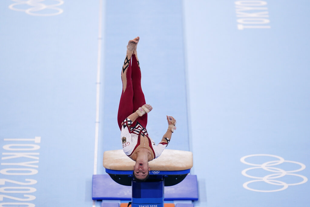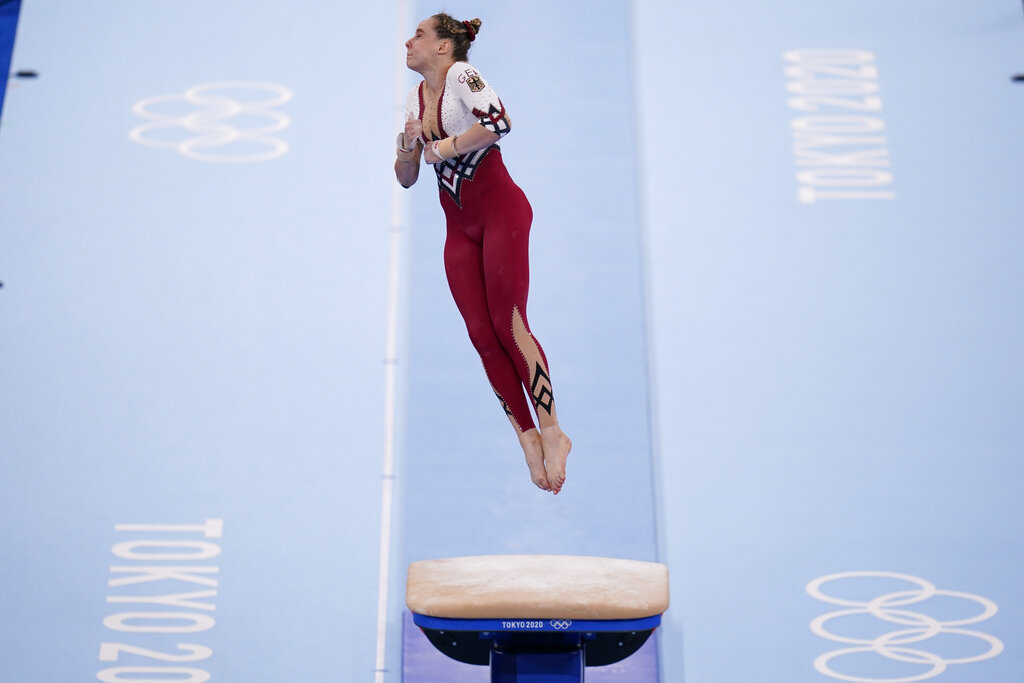But other nations have defied that emphasis on youth, including the Germans: Elisabeth Seitz is 27, Kim Bui is 32, Pauline Schafer is 24, and Voss is 21. Their average age of 26. Voss said that gymnastics customs should leave room for female bodies as they age and change.