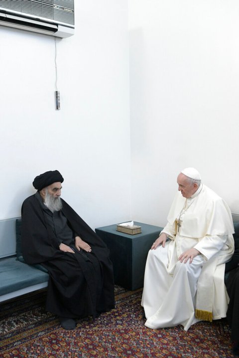NAJAF, Iraq (Reuters) — Pope Francis held a historic meeting with Iraq’s top Shi’ite cleric Grand Ayatollah Ali al-Sistani on Saturday, in a powerful appeal for coexistence in a land torn by sectarianism and violence.