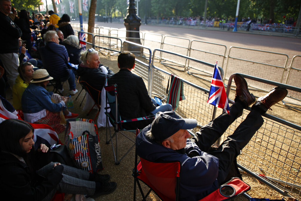 Royal fans gather along the Mall leading to Buckingham Palace in London, Thursday June 2, 2022, on the first of four days of celebrations to mark the Platinum Jubilee. The events over a long holiday weekend in the U.K. are meant to celebrate the monarch’s 70 years of service. (AP Photo/David Cliff)