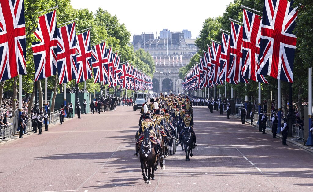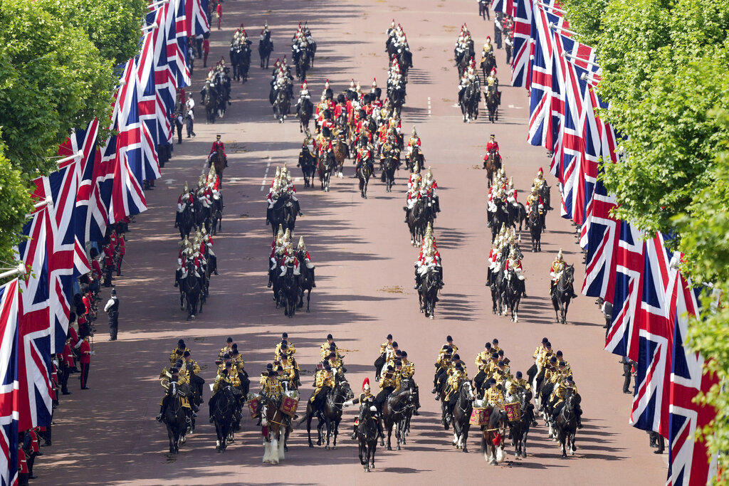 Cheers and the clop of hooves rang out Thursday as horse-drawn carriages carried members of the royal family, including Prince William’s wife, Kate, and their children Prince George, 8, Princess Charlotte, 7, and 4-year-old Prince Louis, from Buckingham Palace to Horse Guards Parade, a ceremonial parade ground about 1 kilometer (0.6 miles) away, for the Trooping the Color ceremony.