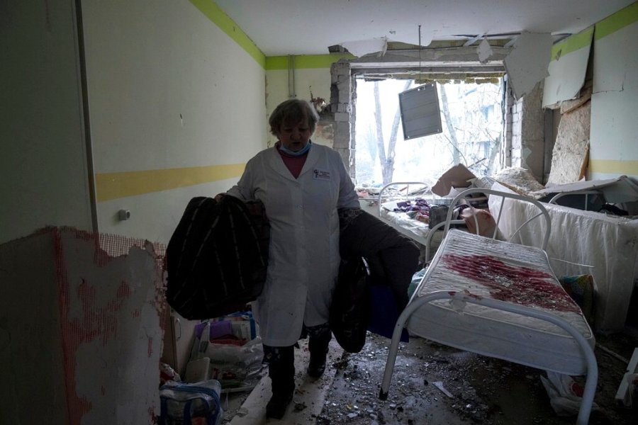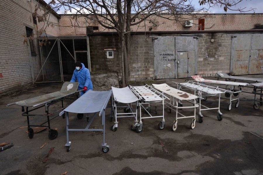 The ground shook more than a mile away when the Mariupol complex was hit by a series of blasts that blew out windows and ripped away much of the front of one building. Police and soldiers rushed to the scene to evacuate victims, carrying out a heavily pregnant and bleeding woman on a stretcher.
