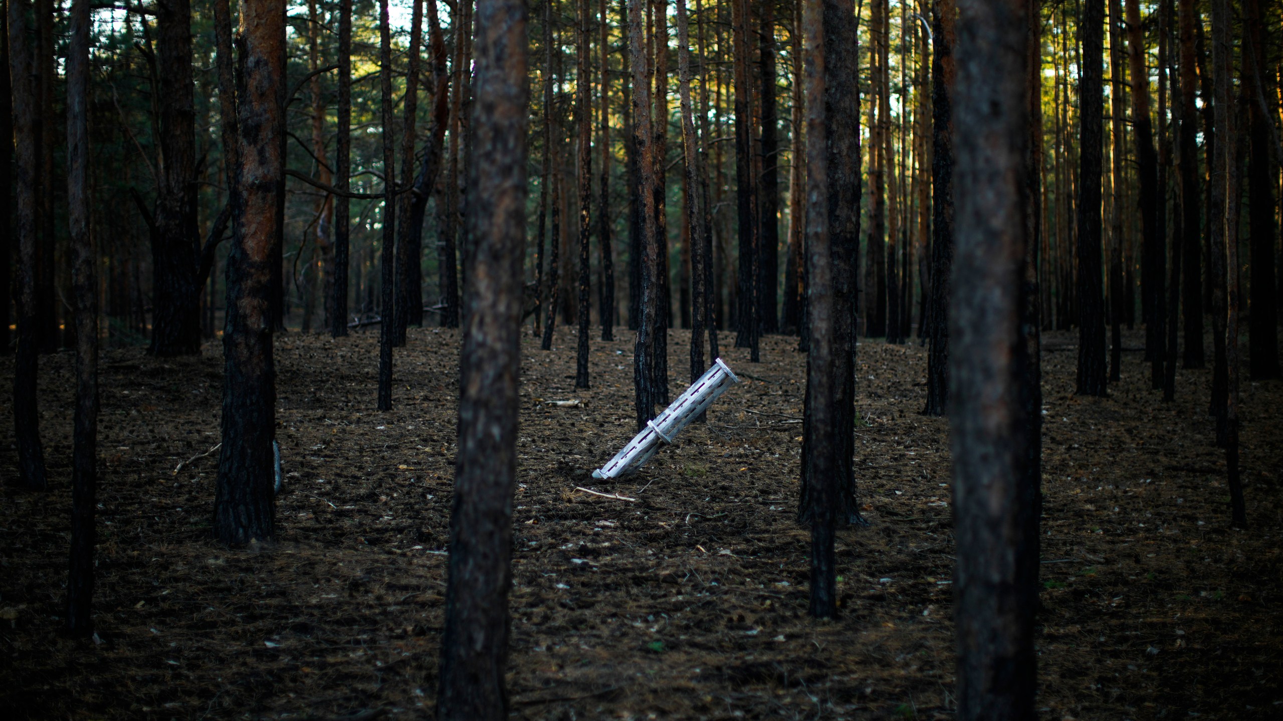 A Russian rocket sticks out of the ground in a forest near Oleksandrivka village, Ukraine, Thursday, Oct. 6, 2022. (AP Photo/Francisco Seco)