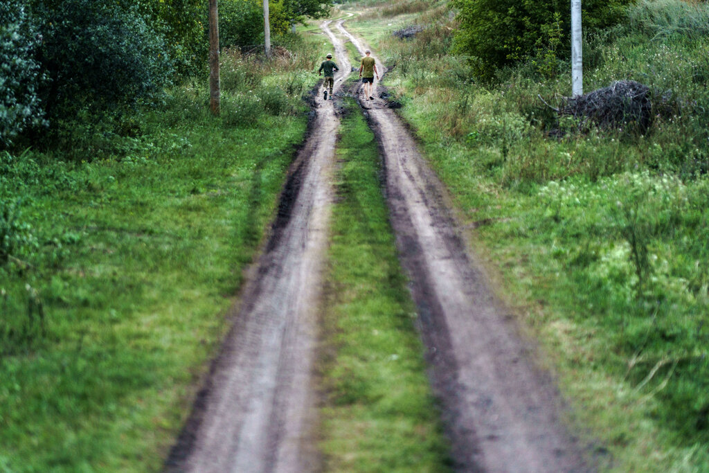 Ukrainian servicemen walk through the village where their unit is currently staying in Donetsk region, eastern Ukraine, Sunday, Aug. 21, 2022. (AP Photo/David Goldman)