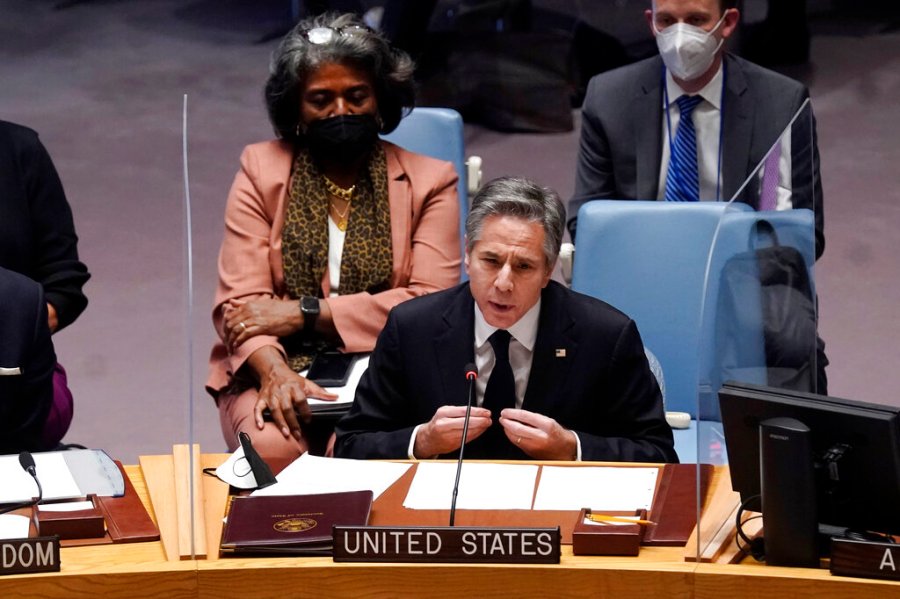 In an implicit nod to Secretary of State Colin Powell’s appearance before the Security Council in 2003, when he cited unsubstantiated and false U.S. intelligence to justify the U.S. invasion of Iraq, Blinken added: “Let me be clear. I am here today not to start a war, but to prevent one.”
