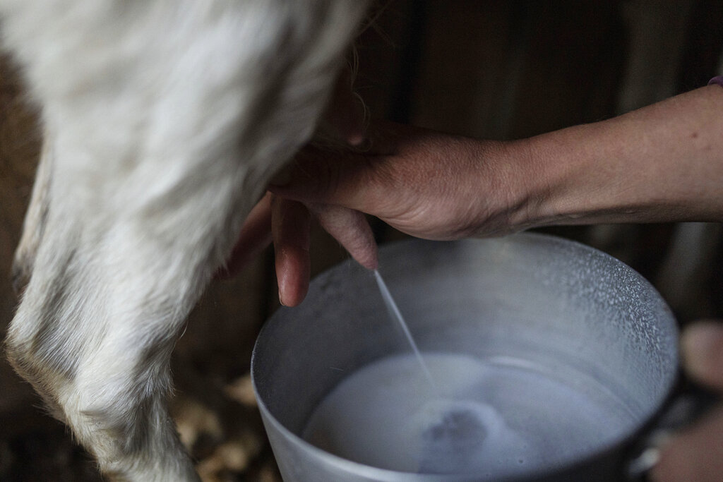 The warmed water went into a bottle with some formula, then it was time to milk the goat.