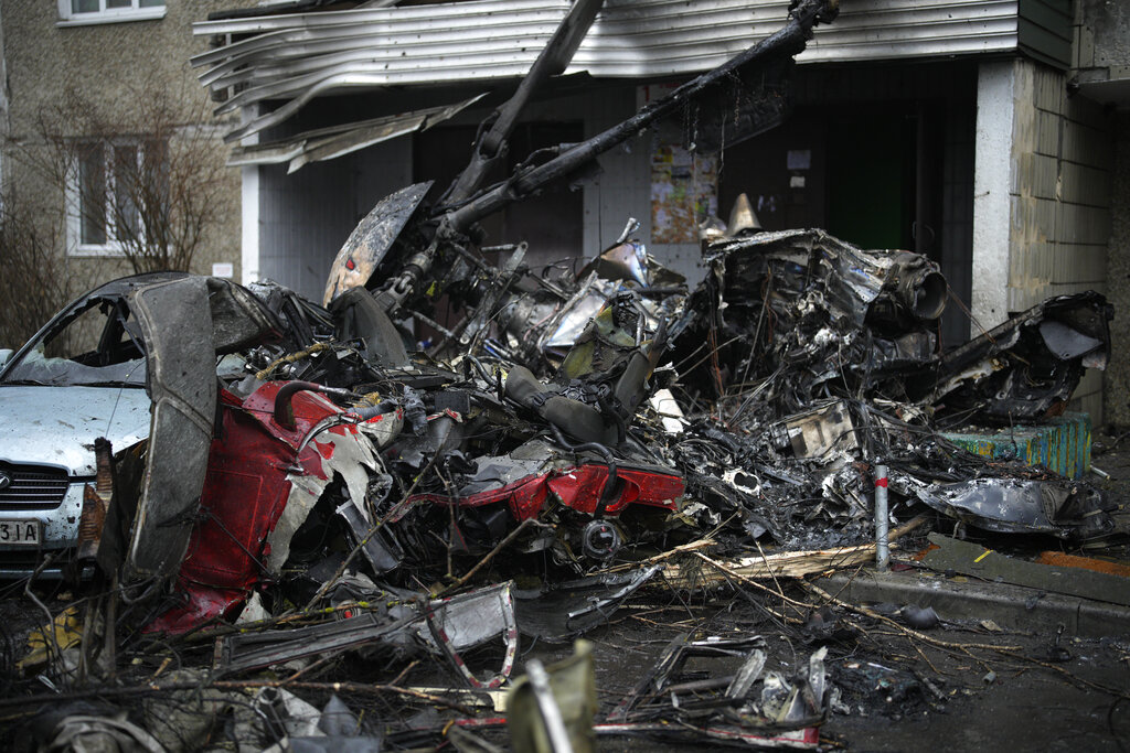 KYIV, Ukraine (AP) — A helicopter crash in a Kyiv suburb Wednesday killed 18 people, including Ukraine’s interior minister and three children, Ukrainian authorities said.