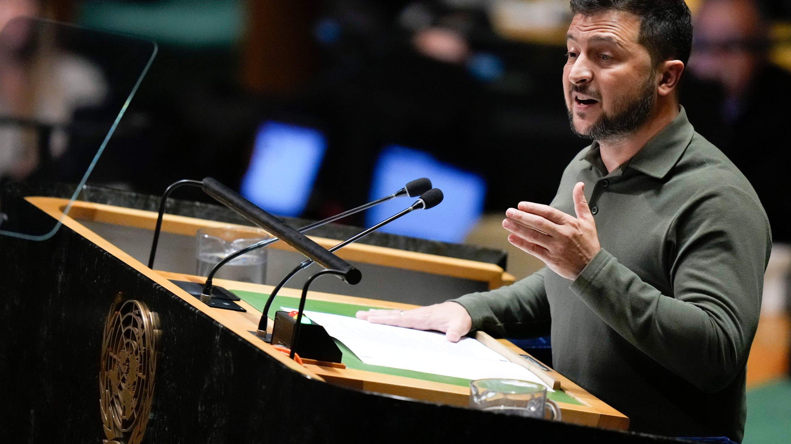 Ukranian President Volodymyr Zelenskyy addresses the 78th session of the United Nations General Assembly, Tuesday, Sept. 19, 2023 at United Nations headquarters. (AP Photo/Mary Altaffer)