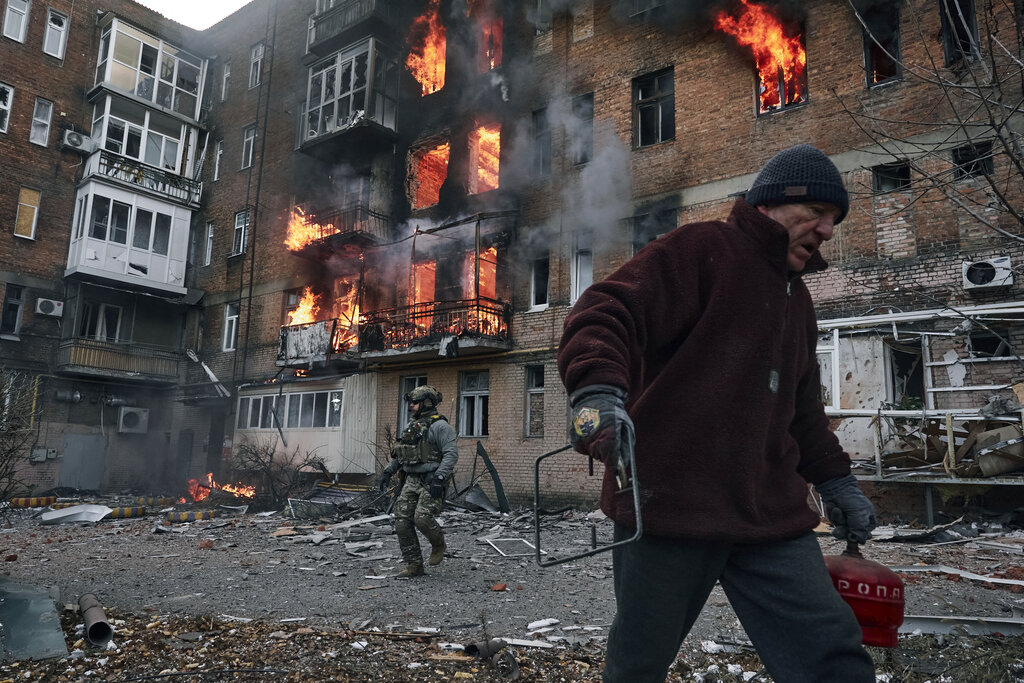 — In the city of Kherson, a 43-year-old waterworks employee was killed when Russian shelling ignited a fire and damaged residential buildings, the presidential office said. In the Donetsk region, Moscow is pressing an offensive near Bakhmut and Avdiivka, with some 20 towns and villages under fire, the General Staff of the Armed Forces of Ukraine said. Ukrainian President Volodymr Zelenskyy said four Kherson police were killed dealing with mines Russian forces left behind when they retreated.
